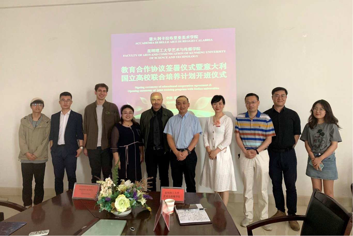 Francesco Scialò院长、泓钰学校王传秀校长、意大利语外教Tommaso Toccacieli先生、意大利语翻译官肖平步先生表示热烈欢迎。在听取了王校长对于中意两国在教育合作领域中所取得的成绩后表示,昆明理工大学将会在两国的教育合作方面发挥积极的推动作用。中意两国在艺术与文化领域都有着重要的地位,也具备广阔的合作与发展空间,校方愿意在艺术教育合作的层面上,进一步拓展与意大利各个国立高校在理、工、农、医、文领域的密切合作。在与通过面试考核选入培养计划的同学们交谈时,周校长一方面勉励大家学好意大利语,另一方面寄予了同学们成为两国文化交流使者的厚望,并祝愿同学们在今后的学习中取得佳绩,预祝昆明理工大学与意大利各国立高校的合作外延不断拓展,合作成效持续提升。