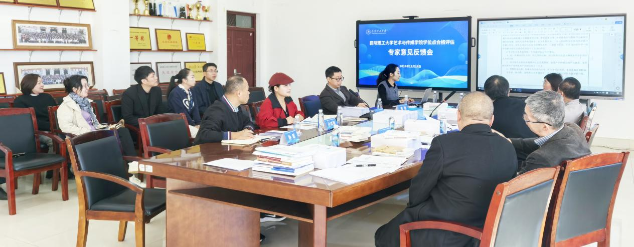 副院长孙鸿雁教授向专家详尽汇报了本学位授权点的人才培养目标、人才培养质量标准、评估目的、评估方式、工作要求和工作流程等,听取专家对评估工作安排的意见,评估专家通过听取总体汇报、与师生和管理人员座谈、查阅有关资料、实地考察走访、观看设计作品,了解学位授权点基本情况。在第二阶段专家反馈会中,专家组成员分别发表意见,经过充分讨论,对设计学一级学科硕士授权点建设成效给予了充分肯定。他们一致认为:昆明理工大学设计学一级学科硕士授权点学科方向能够满足本区域文化经济发展的迫切需求,以“技术+艺术+民族特色”的创新人才培养目标定位合理,学科特色明显,学位标准制定合理,学科队伍的人员规模与知识结构配置以及梯队建设合理,研究生就业与创业发展情况良好,社会评价较高,最终确定设计学一级学科硕士学位授权点评估结果为合格。同时,他们也指出了存在的问题与不足,并提出改进建议。